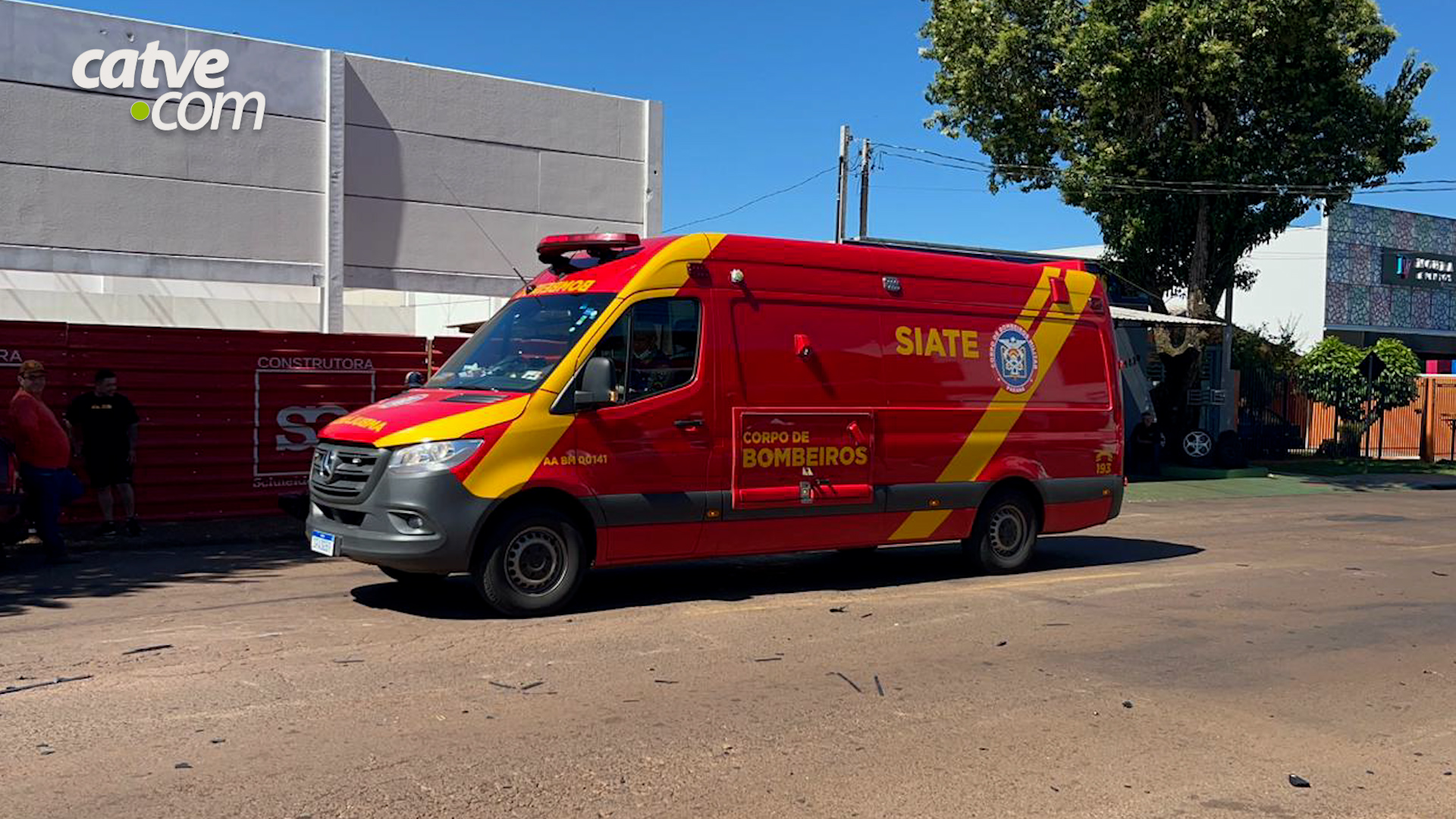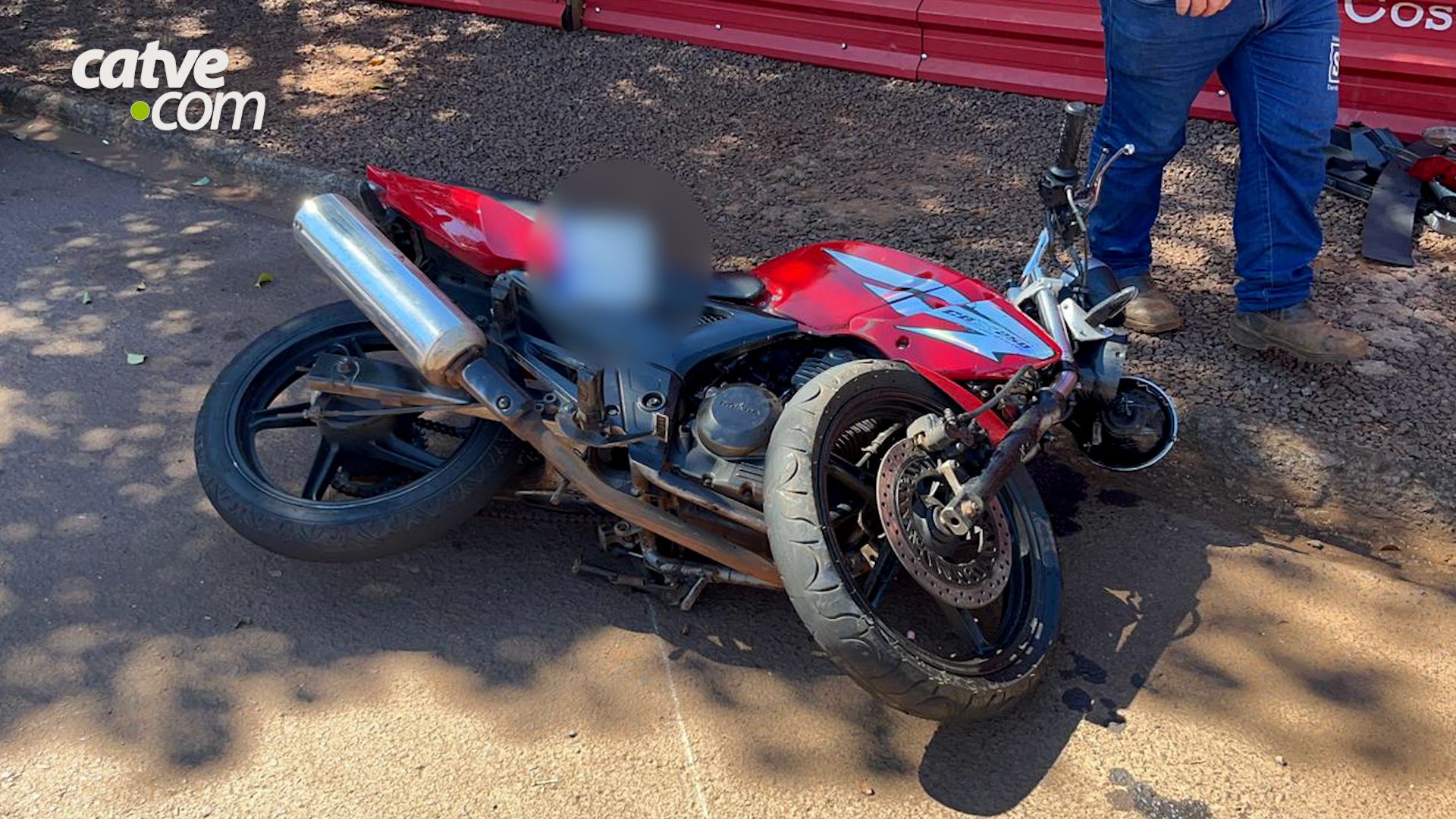 Motociclista de 25 anos ficou ferido após batida com carro no bairro Periolo, em Cascavel, na tarde de quinta-feira (11).