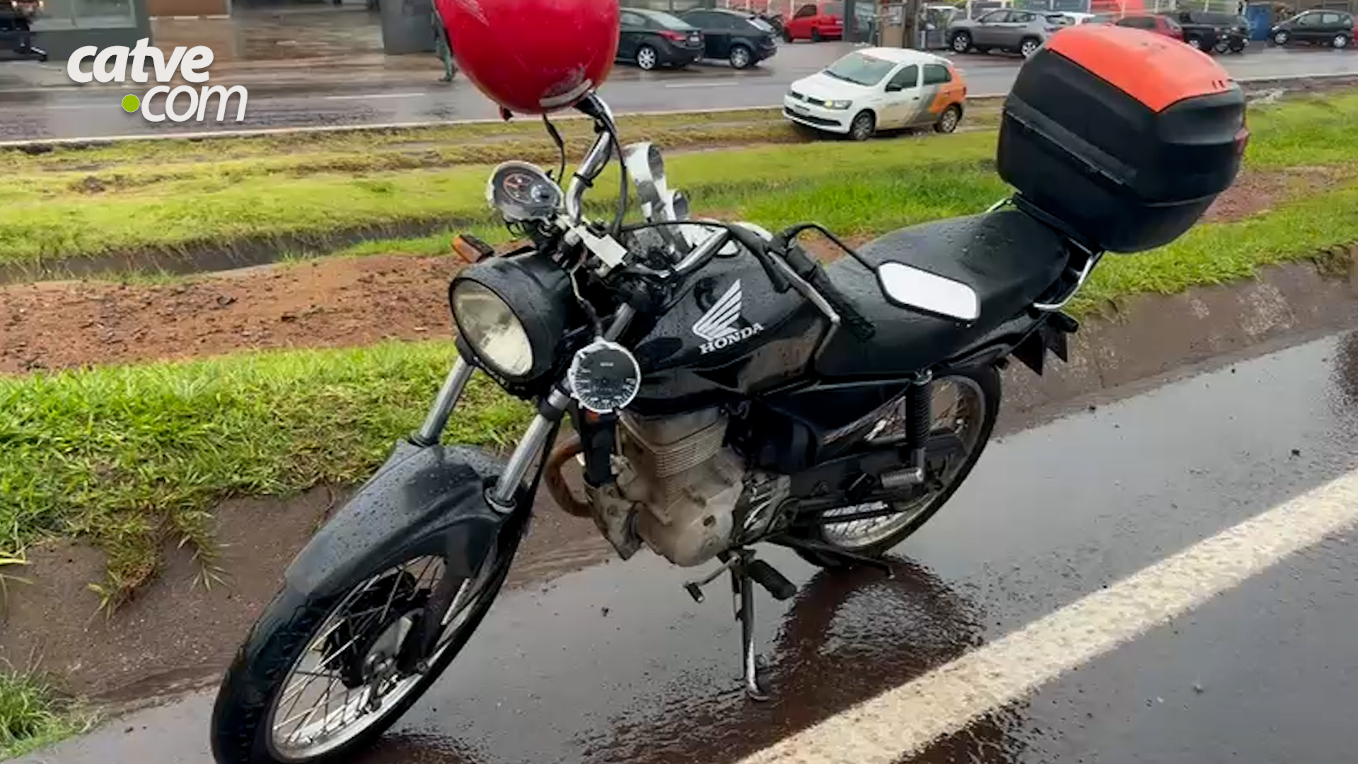 Motociclista ficou ferido em acidente de trânsito no quilômetro 595 da BR-277 em Cascavel, no Oeste do Paraná, na manhã de sexta-feira (12).