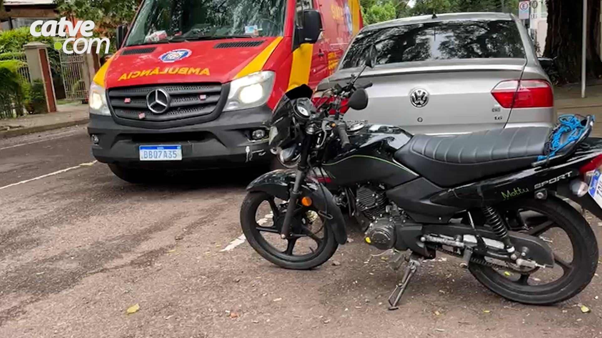 Ele sofreu escoriações em braços e pernas. o rapaz foi atendido pelos socorristas do Siate e encaminhado à unidade hospitalar.