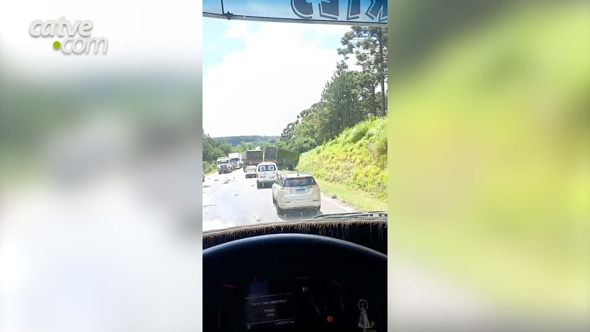 A PRF (Polícia Rodoviária Federal), informou que a equipe está em atendimento e que detalhes serão repassados no término da ocorrência. Não foram confirmados quantidades de feridos e se há óbitos.