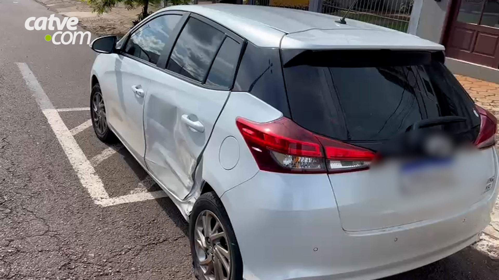 Nas imagens, é possível ver o Astra avançando a preferencial e atingindo o Yaris que seguia pela Avenida Brasil.