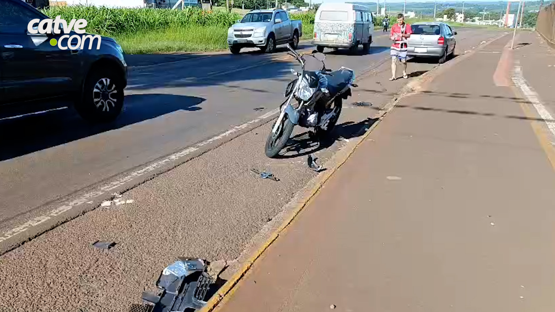 Motociclista de 21 anos ficou ferido após acidente de trânsito entre motocicleta e automóvel, registrado por volta das 7h50 desta quarta-feira (17), na Avenida Egídio Jerônimo Munareto, na saída de Toledo para o trevo da PR-585, que dá acesso ao município de São Pedro do Iguaçu.