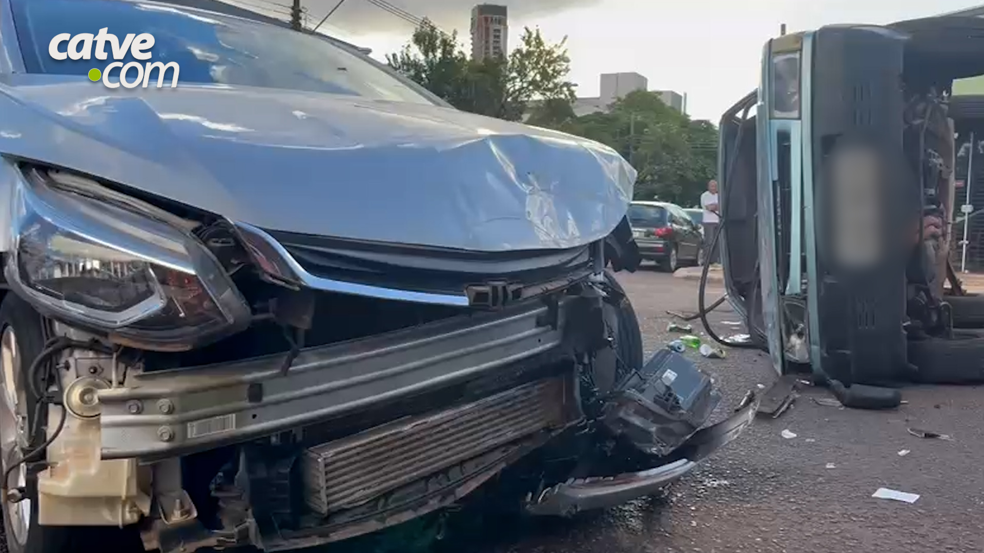 "Mais uma colisão envolvendo dois automóveis em que um dos veículos não observou a via de pare e atravessou a preferencial e colidiu com o outro automóvel. Esse que atravessou a preferencial, ele foi capotado e tombado no meio da pista com o condutor dentro do veículo, preso pelo cinto de segurança", afirmou.