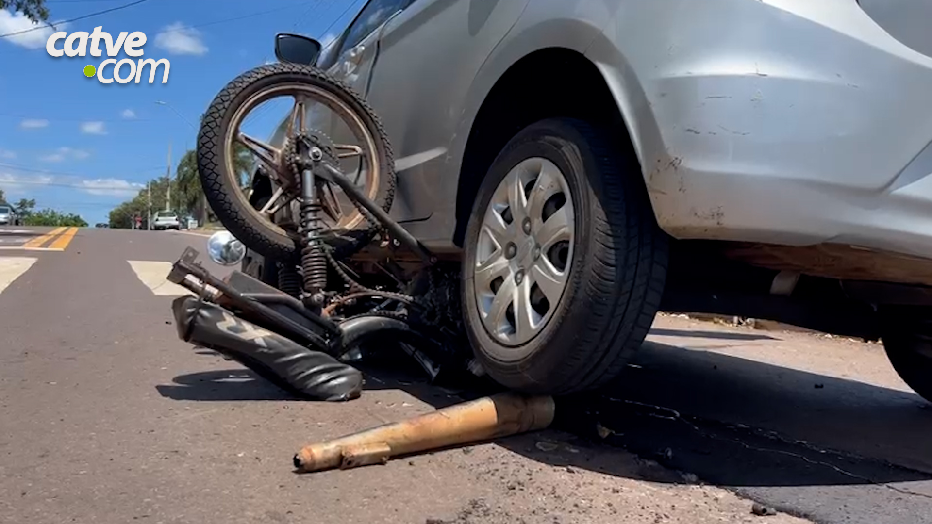 Acidente de trânsito deixou jovem de 20 anos ferido na tarde desta quinta-feira (18), no cruzamento da Rua Tubinambás com a Rua Parecis, no bairro Santo Onofre, em Cascavel, no oeste do Paraná.