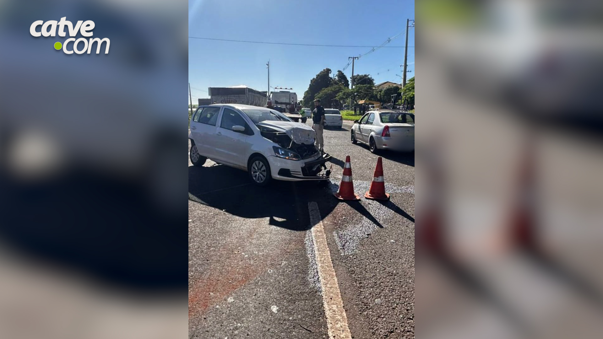 O acidente causou congestionamento na via e provocou um engavetamento envolvendo quatro carros pequenos, um caminhão e uma motocicleta, resultando apenas em danos materiais.