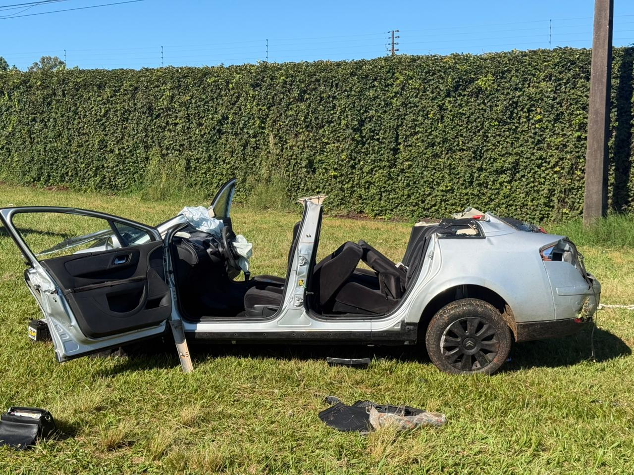Segundo a PRF (Polícia Rodoviária Federal), o Citroen C4 Pallas saiu da pista, na altura do quilômetro 198, e atingiu um muro.