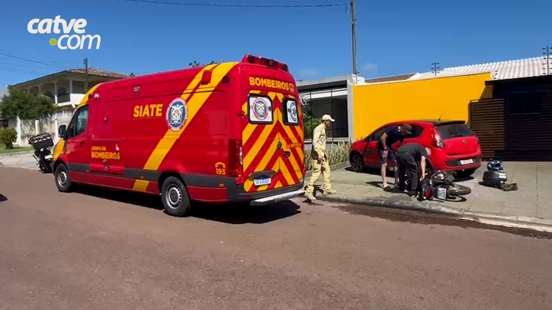 Um jovem de 22 anos ficou gravemente ferido após um acidente entre uma motocicleta e uma caminhonete na manhã deste sábado (20), em Cascavel. A batida foi na rua Aparecida do Norte, esquina com a Rua Ângelo Chiamulera, no bairro Pioneiros Catarinenses.