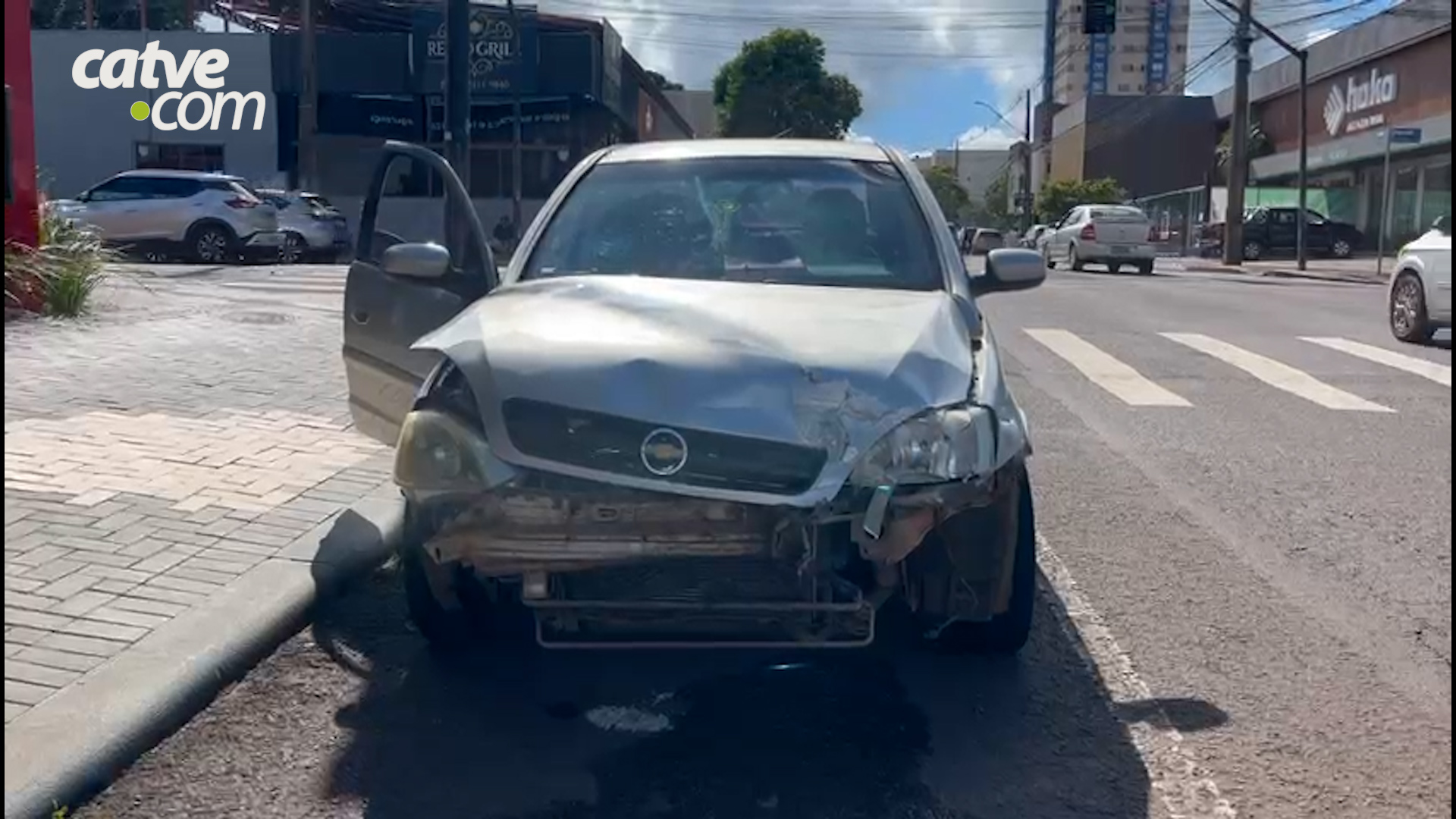 Acidente de trânsito entre dois carros foi registrado na tarde deste sábado (20) no cruzamento da Rua Jorge Lacerda com a Rua Pernambuco, no Centro em Cascavel.