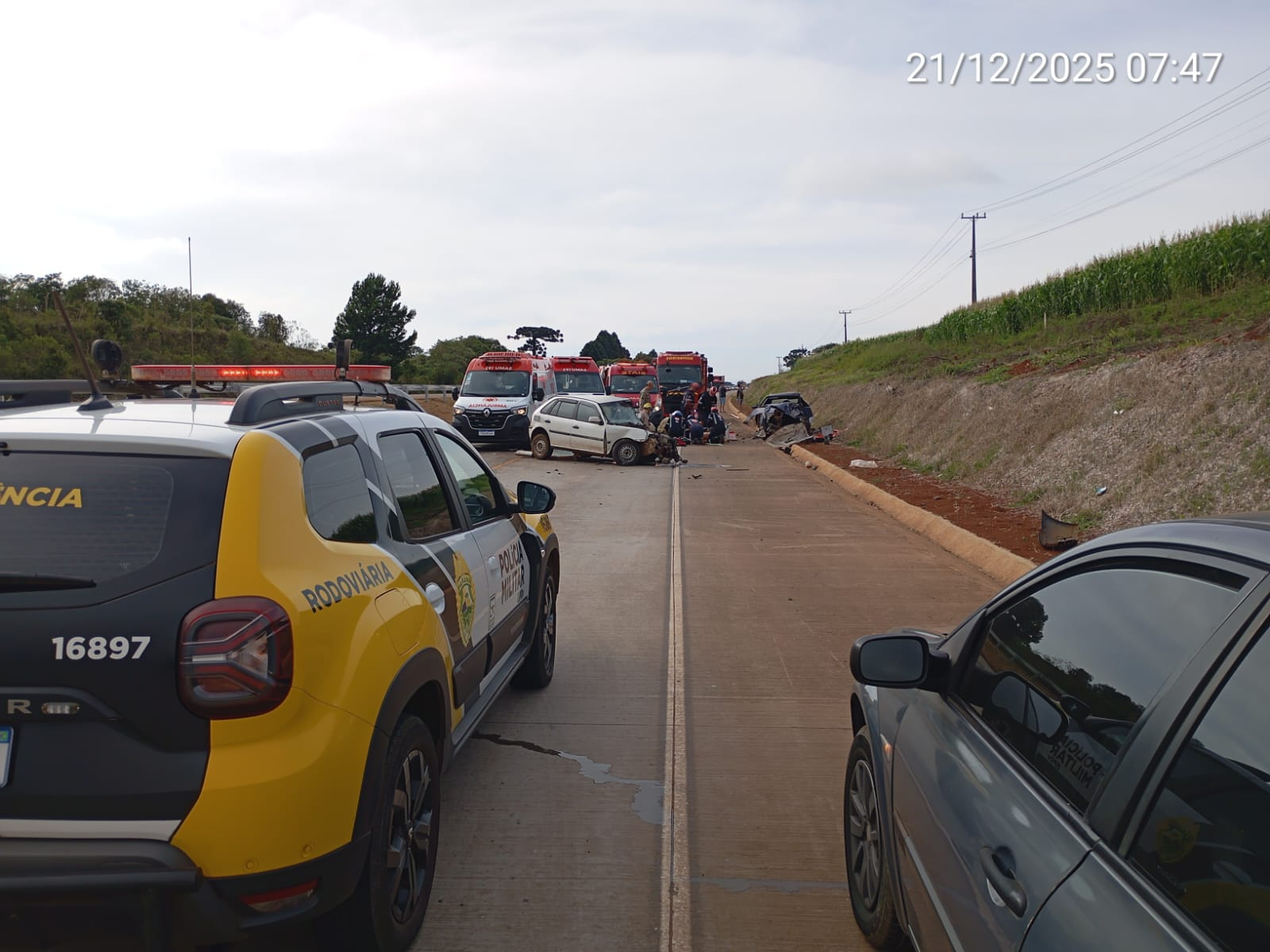 Segundo a PRE (Polícia Rodoviária Estadual), o Volkswagen Gol e o Chevrolet Kadett seguiam em sentidos opostos, quando bateram de frente.