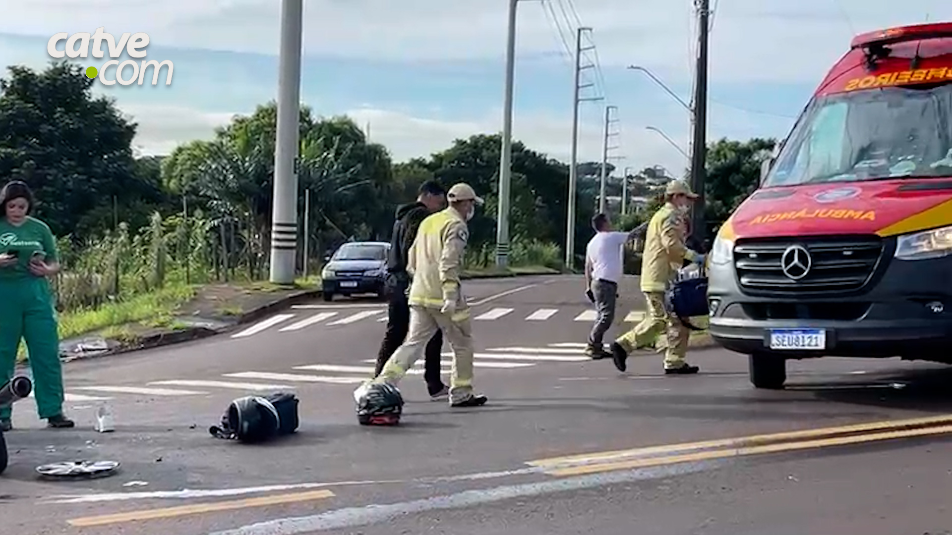 Motociclista, de 29 anos, ficou ferido após se envolver em acidente de trânsito no bairro Brasmadeira, em Cascavel, na manhã desta sexta-feira (2).