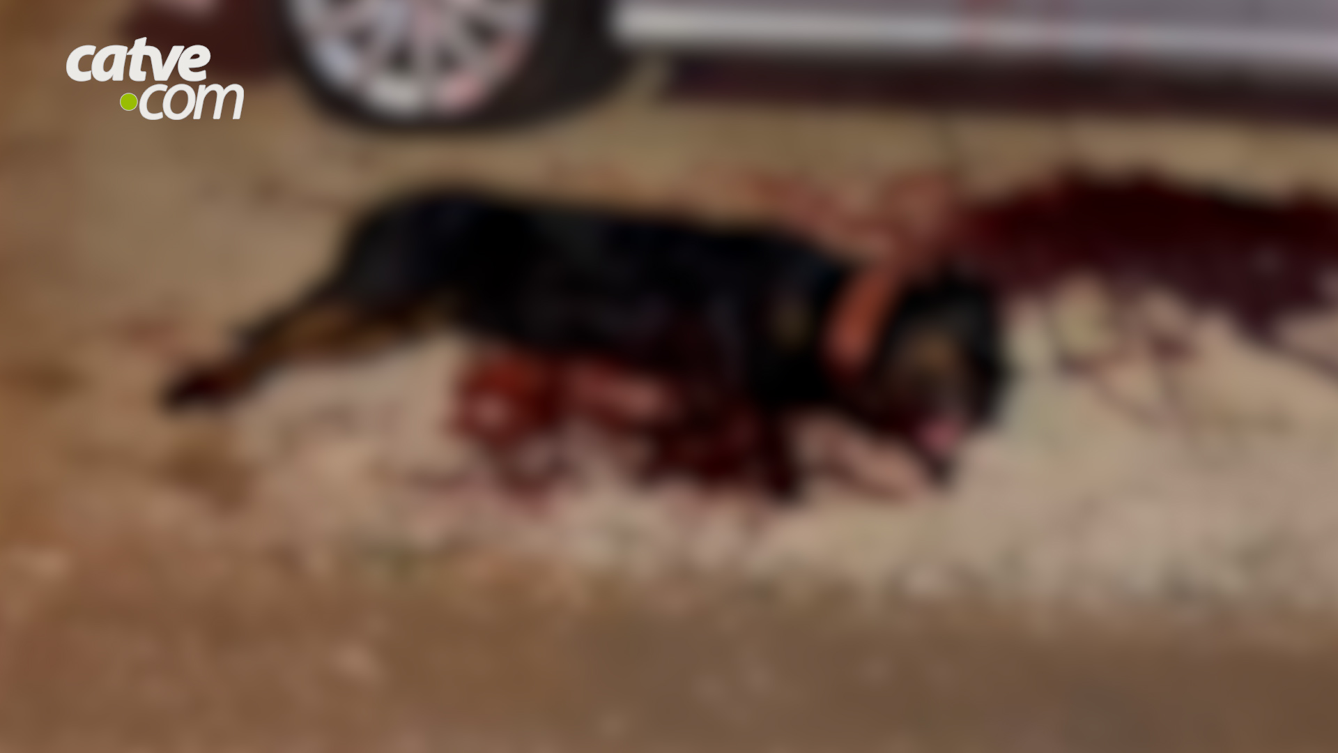 Cachorro da raça rottweiler foi abatido após atacar homem na Rua Padre Ricardo, no bairro Coqueiral, em Cascavel, na madrugada de domingo (9).