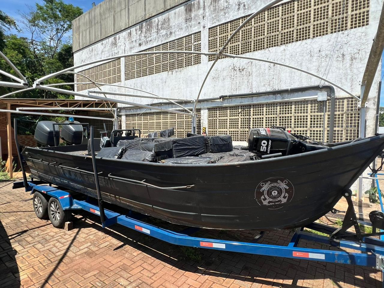 A embarcação e o material apreendido foram encaminhados à Receita Federal em Foz do Iguaçu.