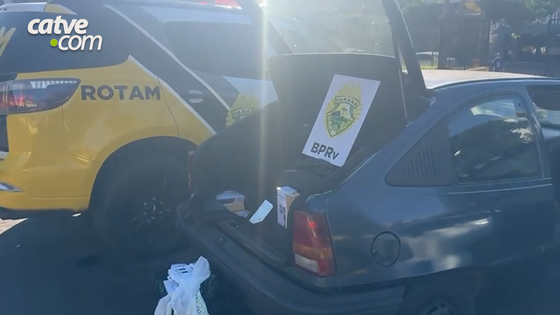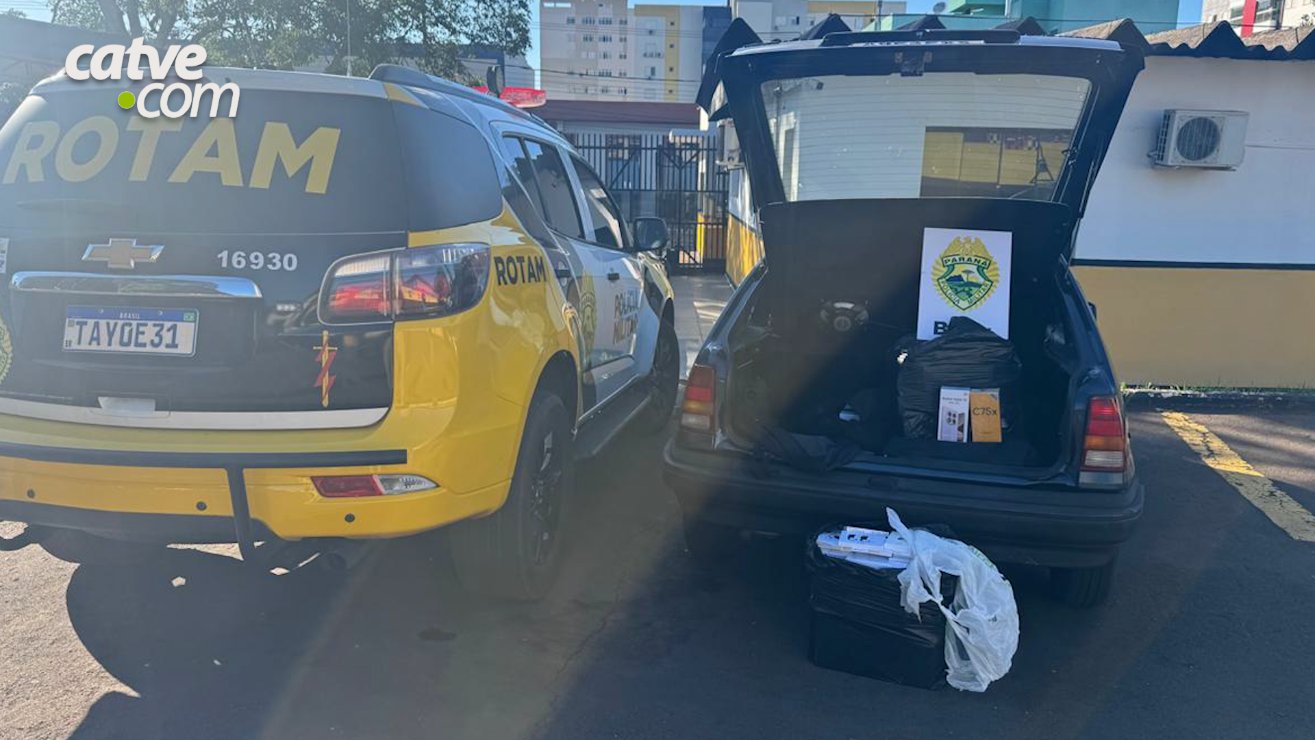Os policiais localizaram 191 produtos, entre eles 92 celulares de origem estrangeira e sem documentação fiscal, dentro de um Chevrolet Kadett com placas de Foz do Iguaçu.