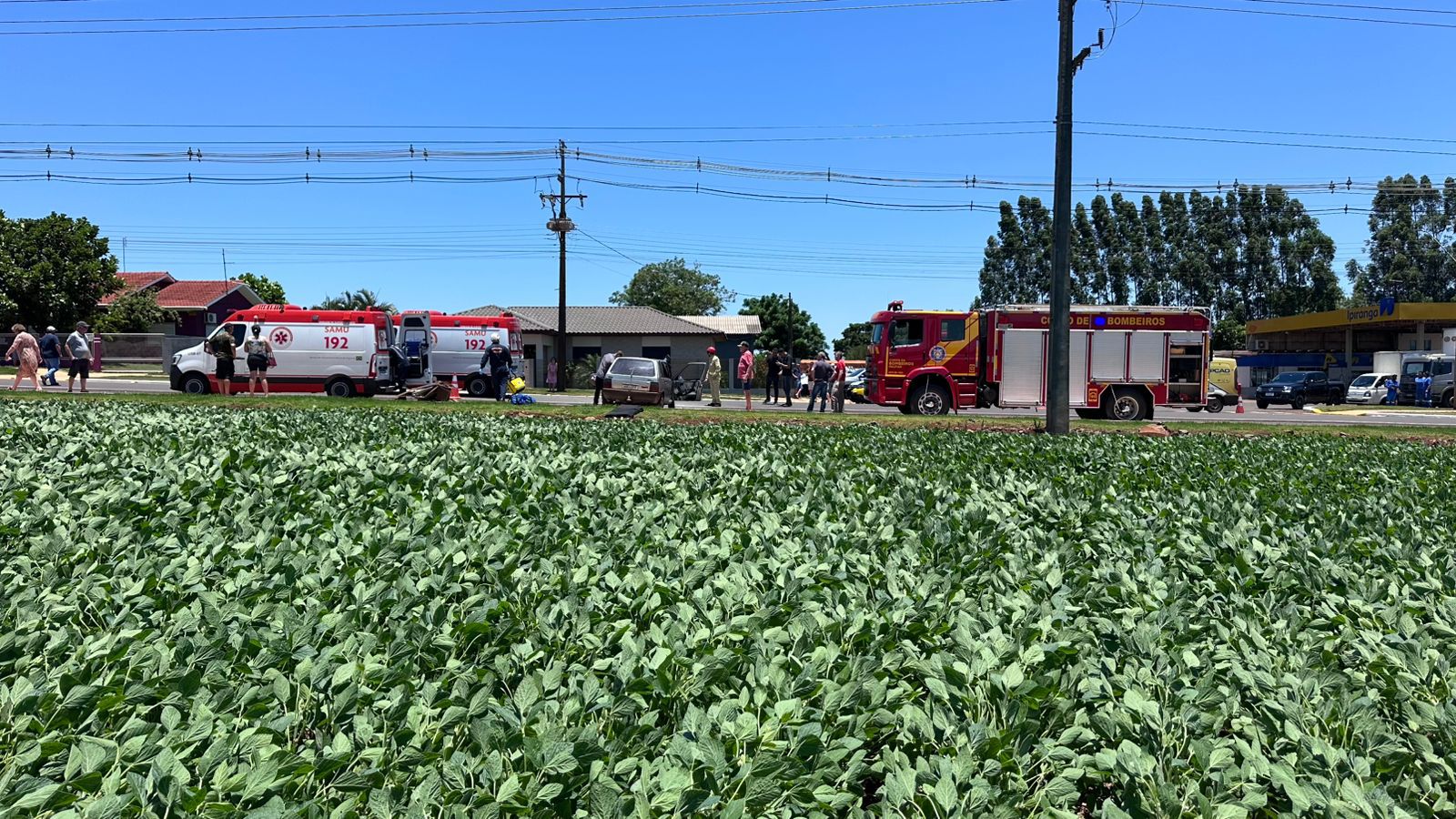 Batida entre dois veículos deixou três pessoas feridas no fim da manhã desta quinta-feira (27), na PR-488, em Santa Helena.