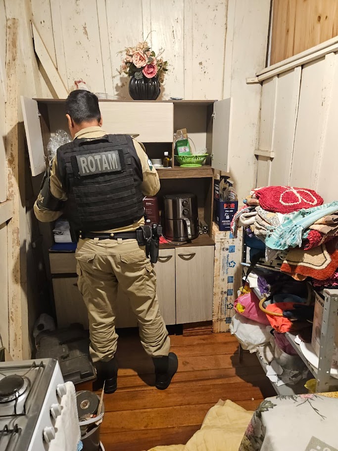 O mandado de prisão e o mandado de busca e apreensão foram cumpridos no município de Toledo, no Oeste do Estado, com o apoio do grupo de Rondas Ostensivas Tático Móvel (Rotam) do 19º Batalhão da Polícia Militar (BPM).
