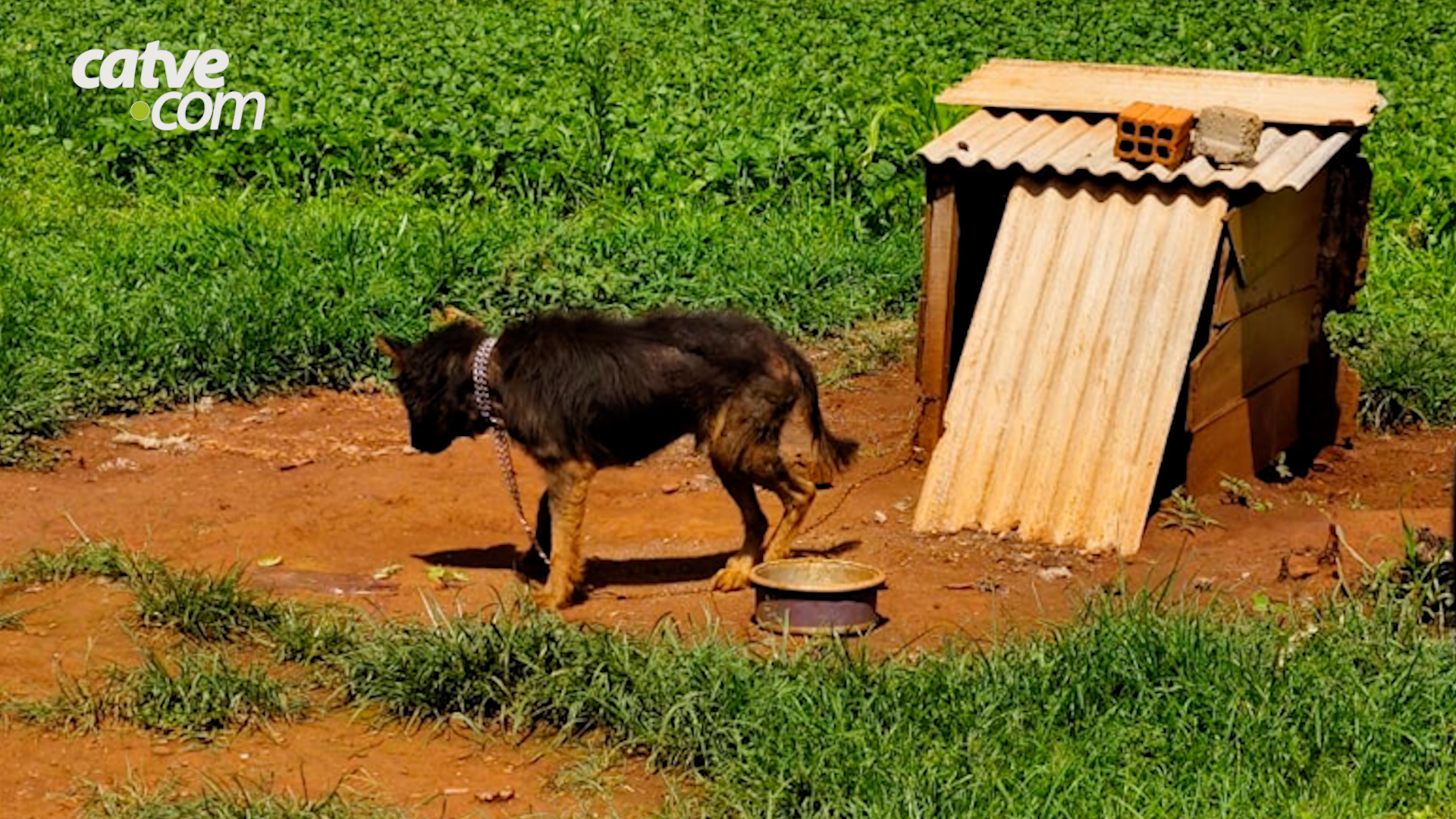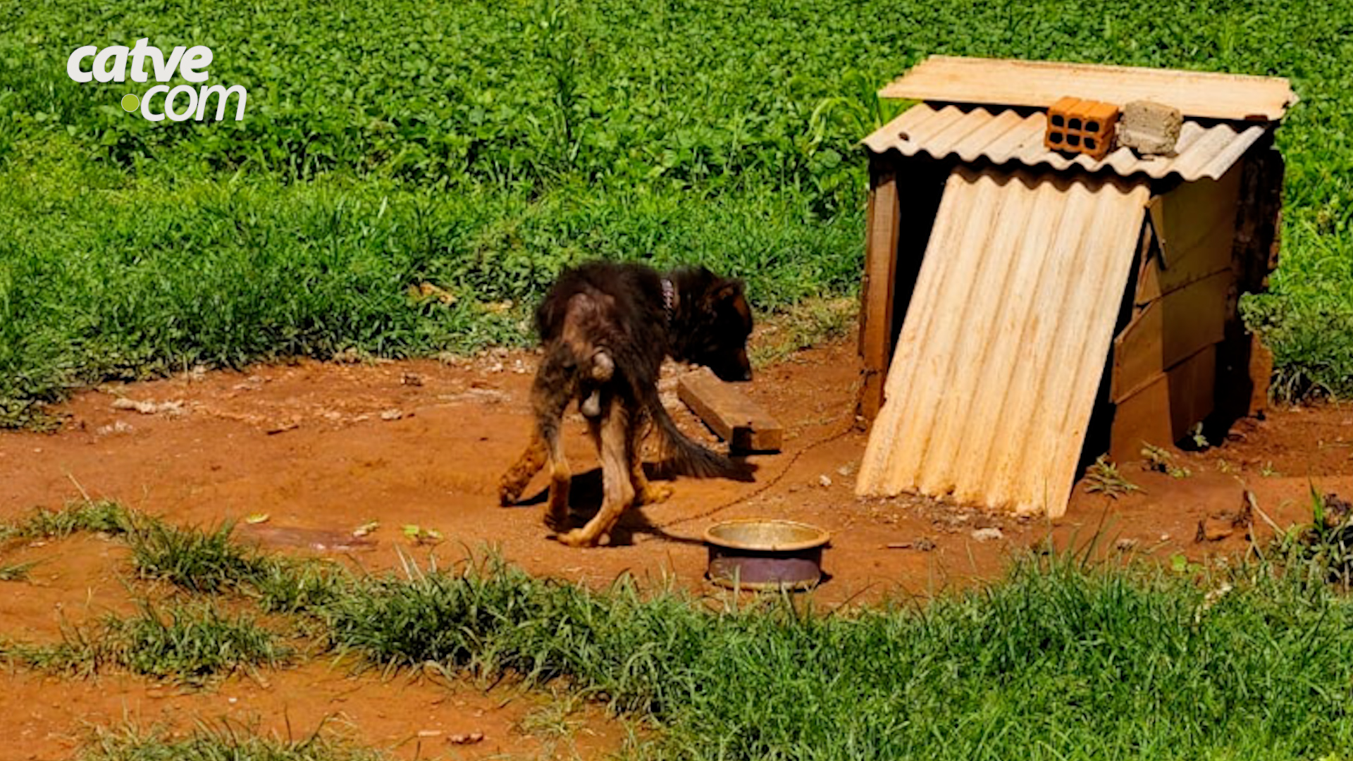 Denúncia de maus-tratos revelou a situação de um cão na comunidade Alto Alegre, no interior de Cascavel.