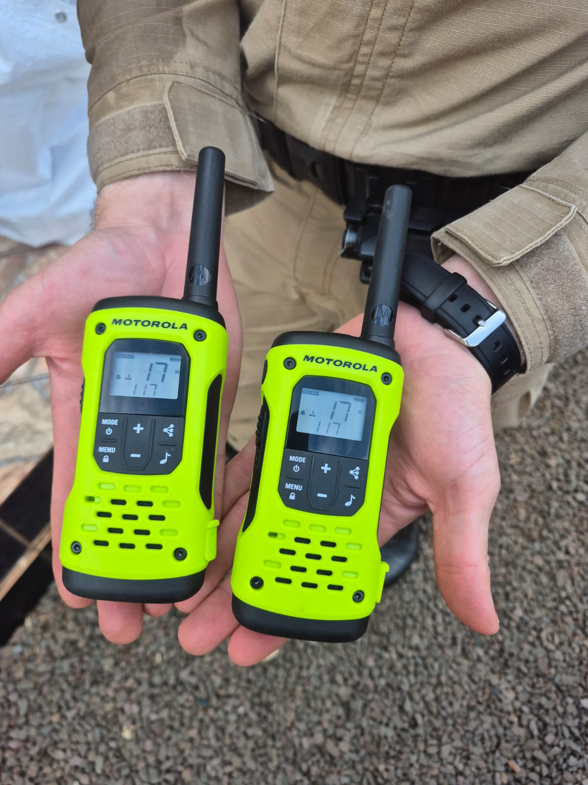 No carro estavam um homem e uma mulher. Nada de ilícito foi encontrado com eles, porém o veículo escondia grande quantidade de cigarros eletrônicos no porta-malas e sob os assentos. Os rádios comunicadores foram encontrados na bolsa da passageira.