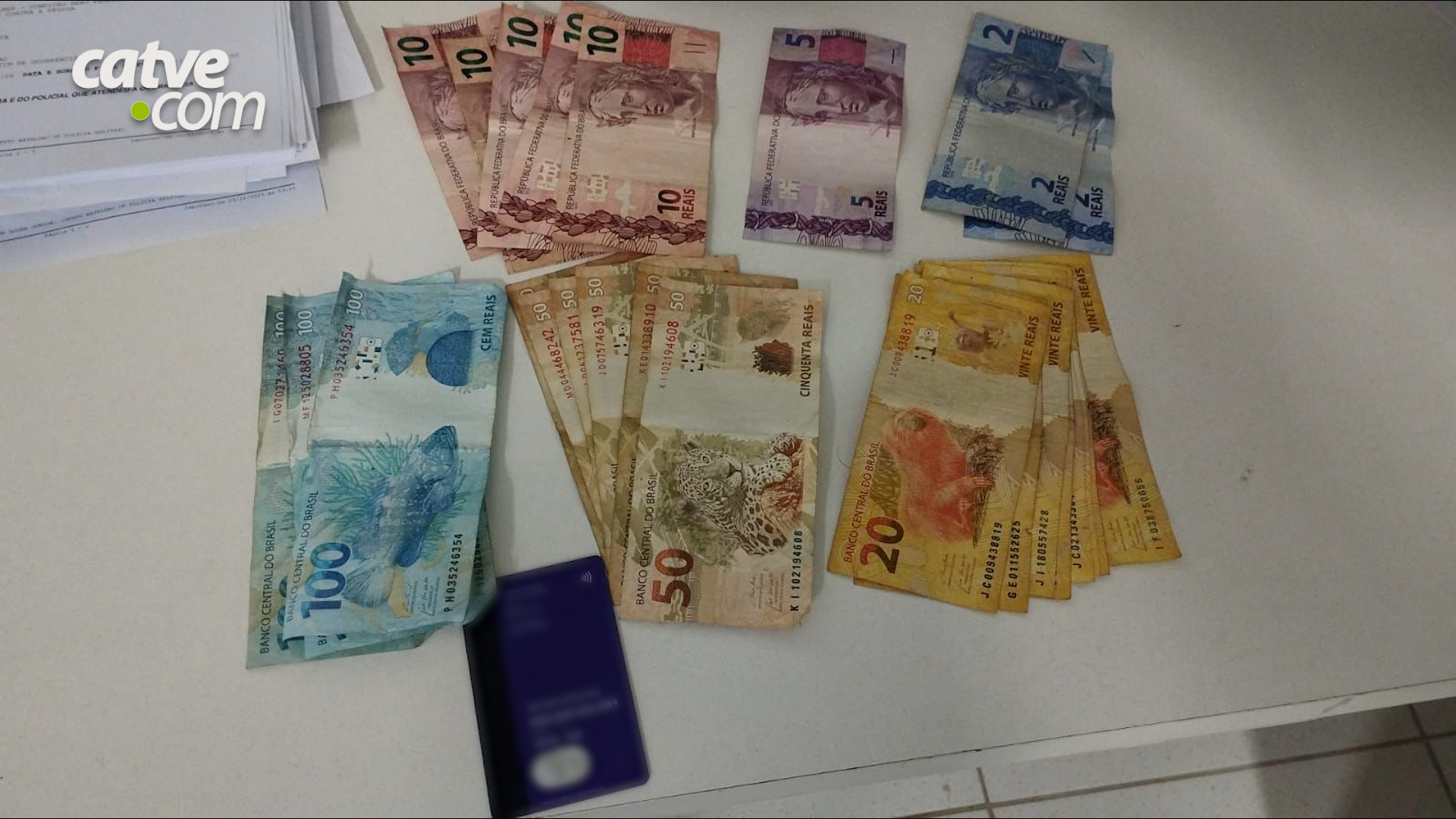 No local, os agentes encontraram um homem na varanda, acompanhado de outras pessoas. Durante a abordagem, duas pessoas correram para dentro do imóvel. O primeiro suspeito portava R$ 829, um cartão de crédito em nome da vítima, 2,05 gramas de maconha, R$ 40 no bolso, um celular e usava tornozeleira eletrônica. Ele negou participação no furto.