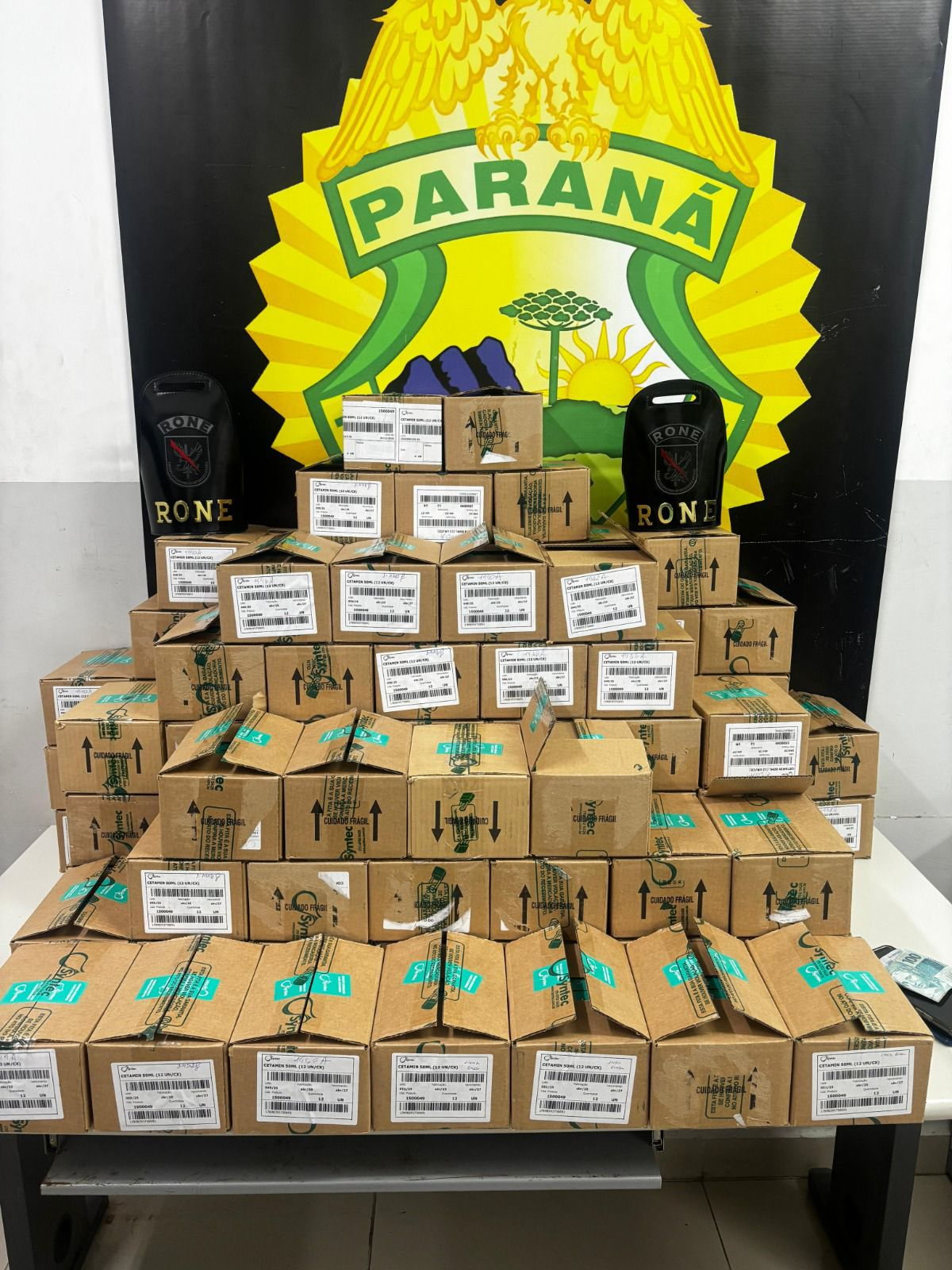 As investigações da PCPR iniciaram a partir de uma ação da equipe da PMPR em 21 de maio deste ano que resultou na apreensão de 1.171 unidades de cetamina, um medicamento anestésico para uso animal sujeito a controle especial. O material estava armazenado em uma residência no Bairro Alto, em Curitiba.