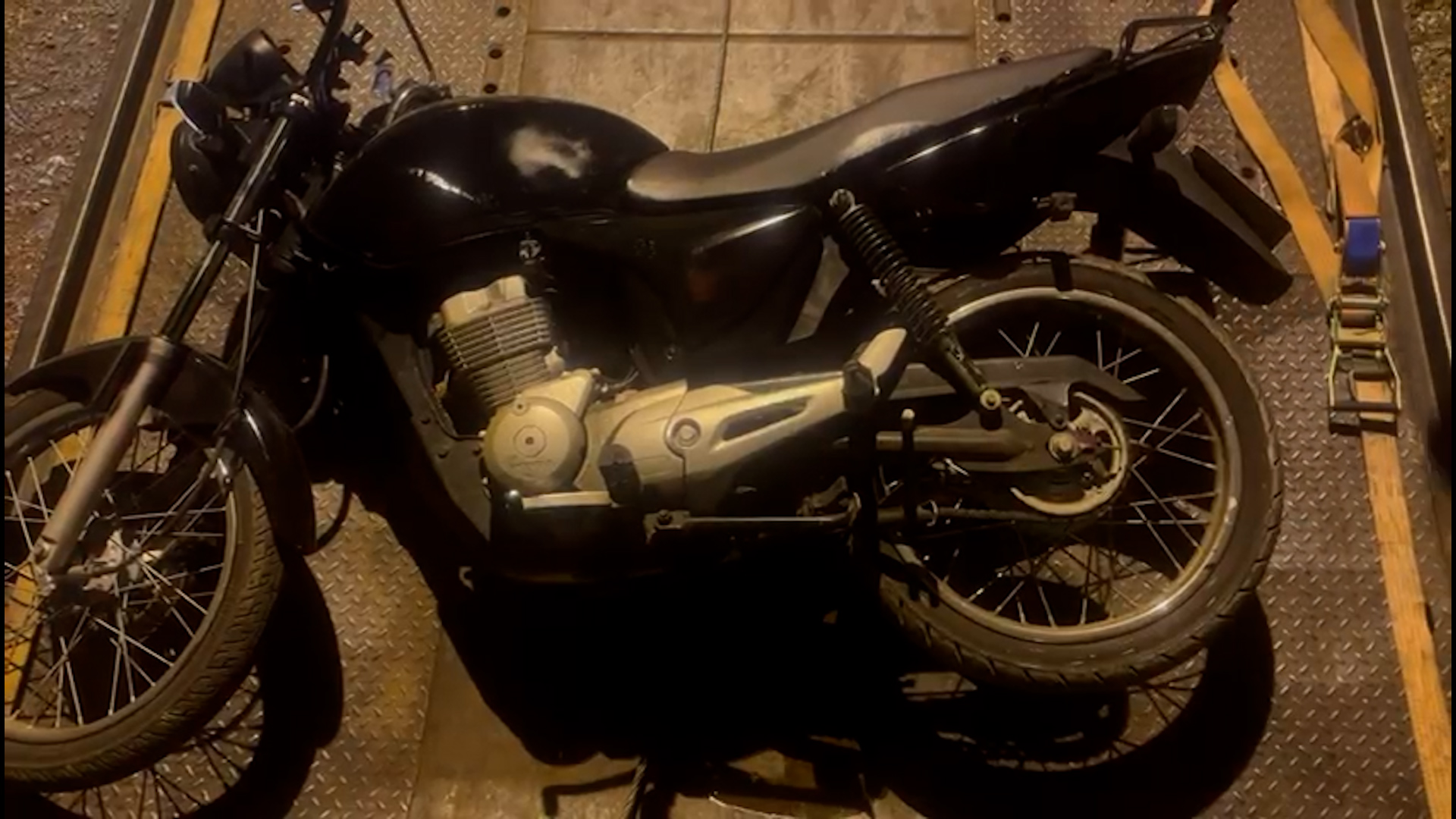 A Polícia Militar localizou a moto dos assaltantes da loja de eletrônicos do bairro Santa Felicidade, em Cascavel.
