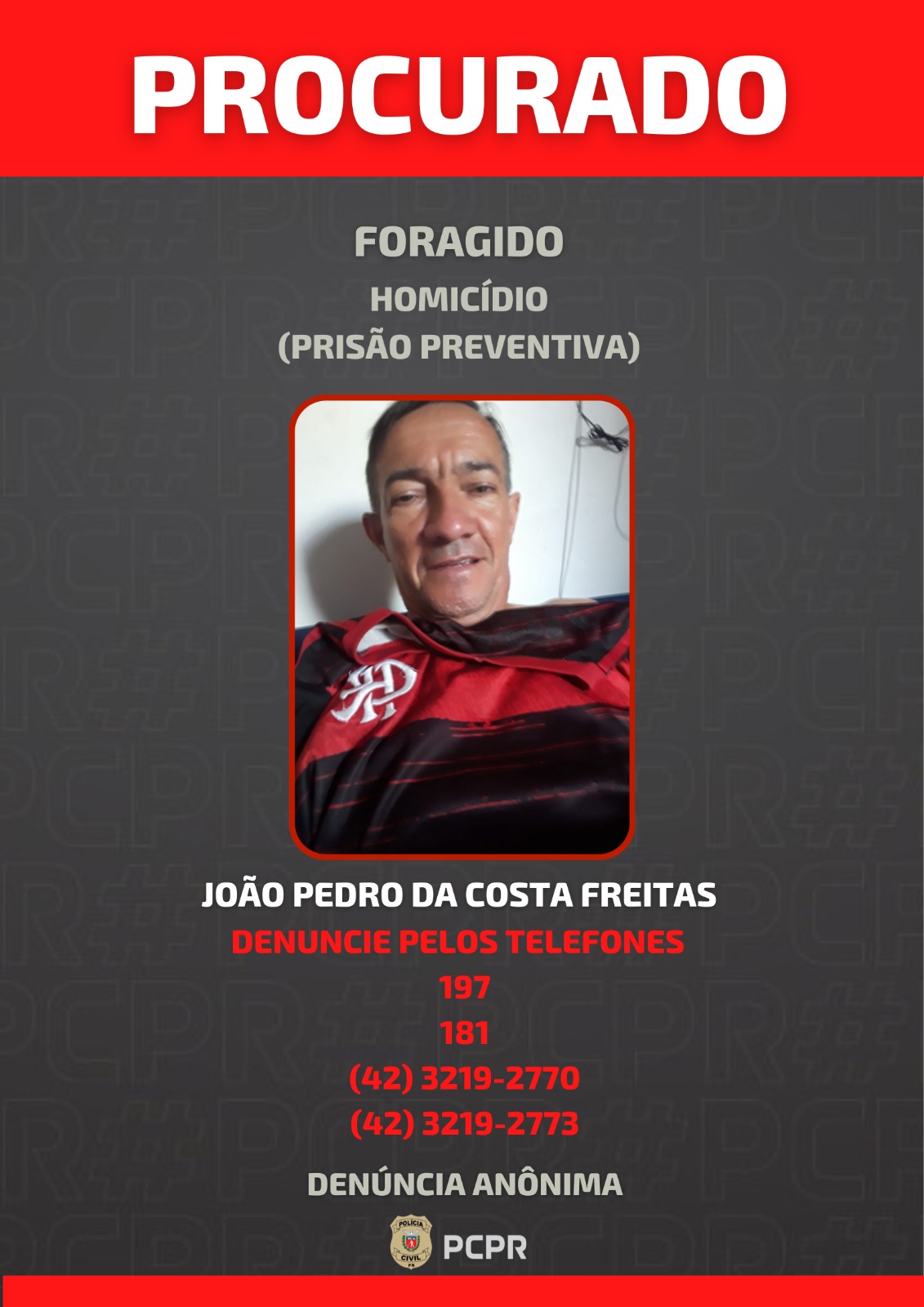 Polícia Civil procura homem foragido por homicídio em Ponta Grossa