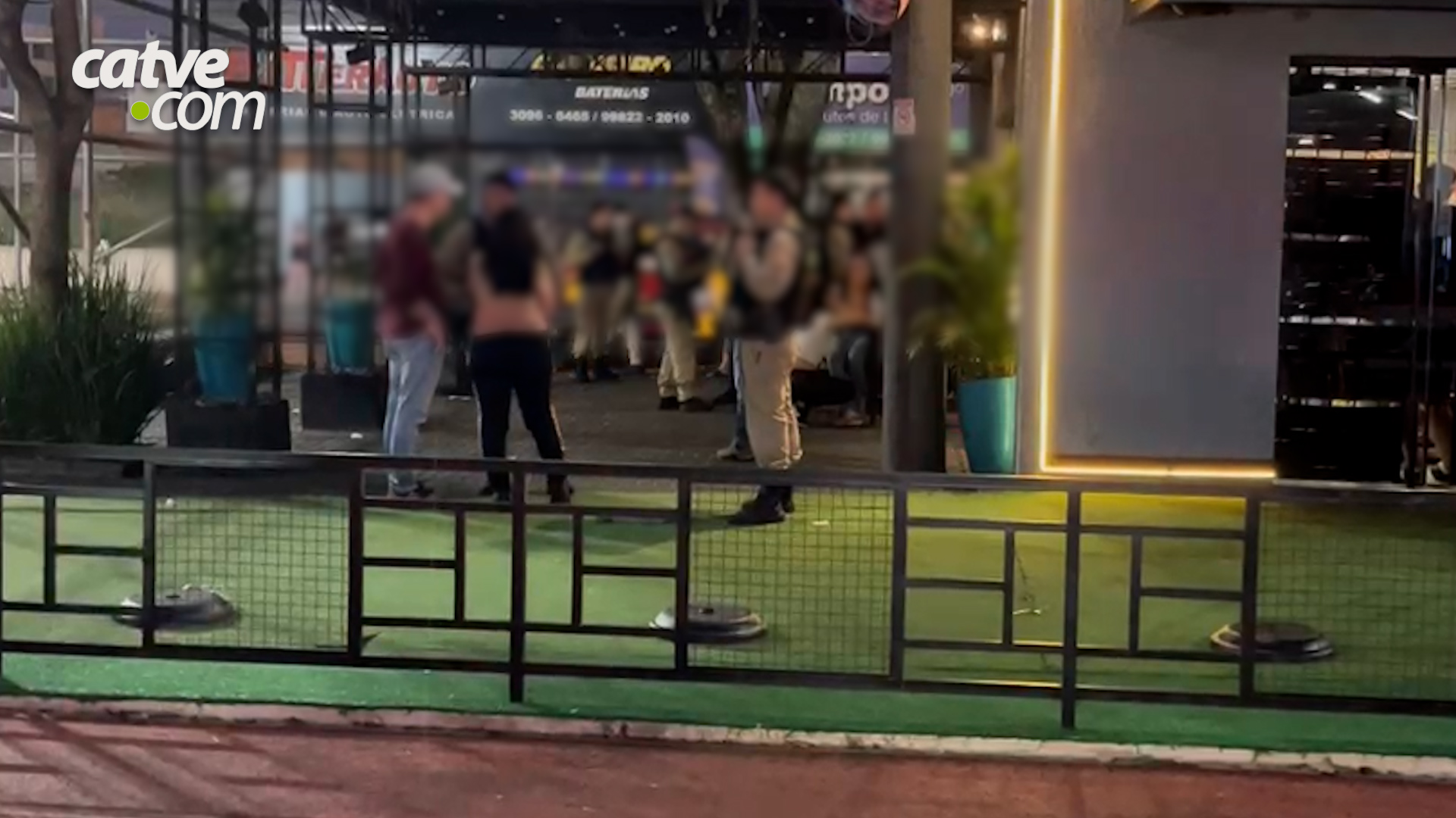 O Catve.com teve acesso a imagens de câmera de segurança que registraram a confusão no bar na noite deste sábado (13), que terminou com homem ferido por disparo de arma de fogo e outro agredido.