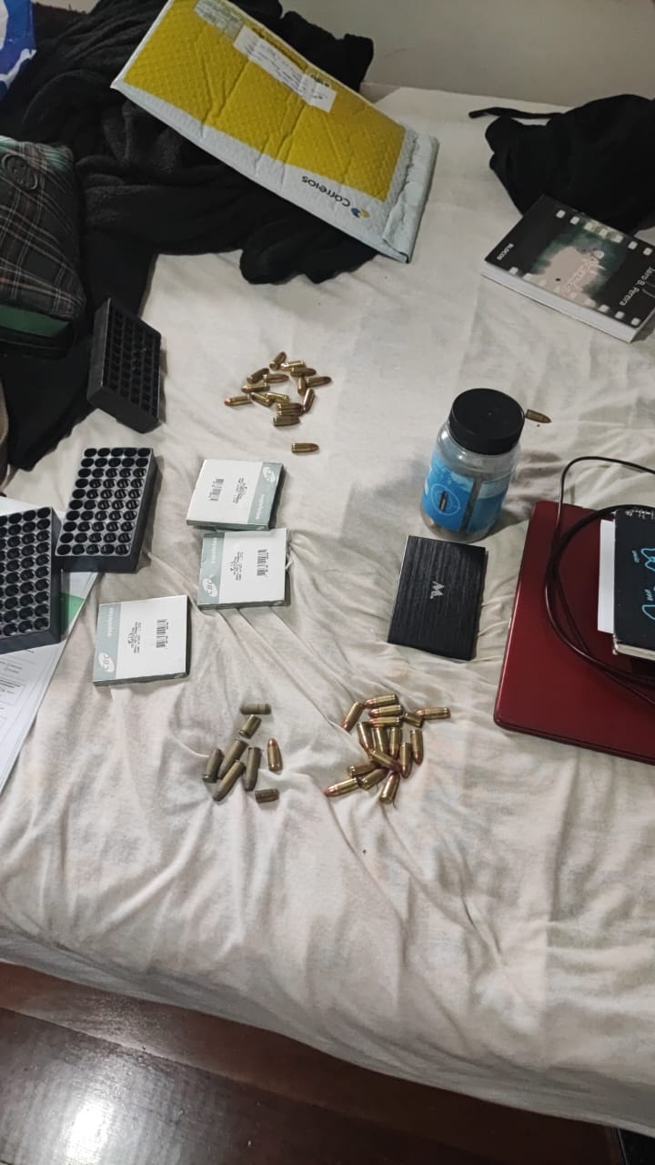 Durante o cumprimento das ordens judiciais, foram apreendidos celulares, equipamentos eletrônicos, documentos, 106 munições de diferentes calibres (9 mm, .38 e .12) e 274 espoletas. Todo o material será submetido à perícia e deve contribuir para o avanço das investigações.
