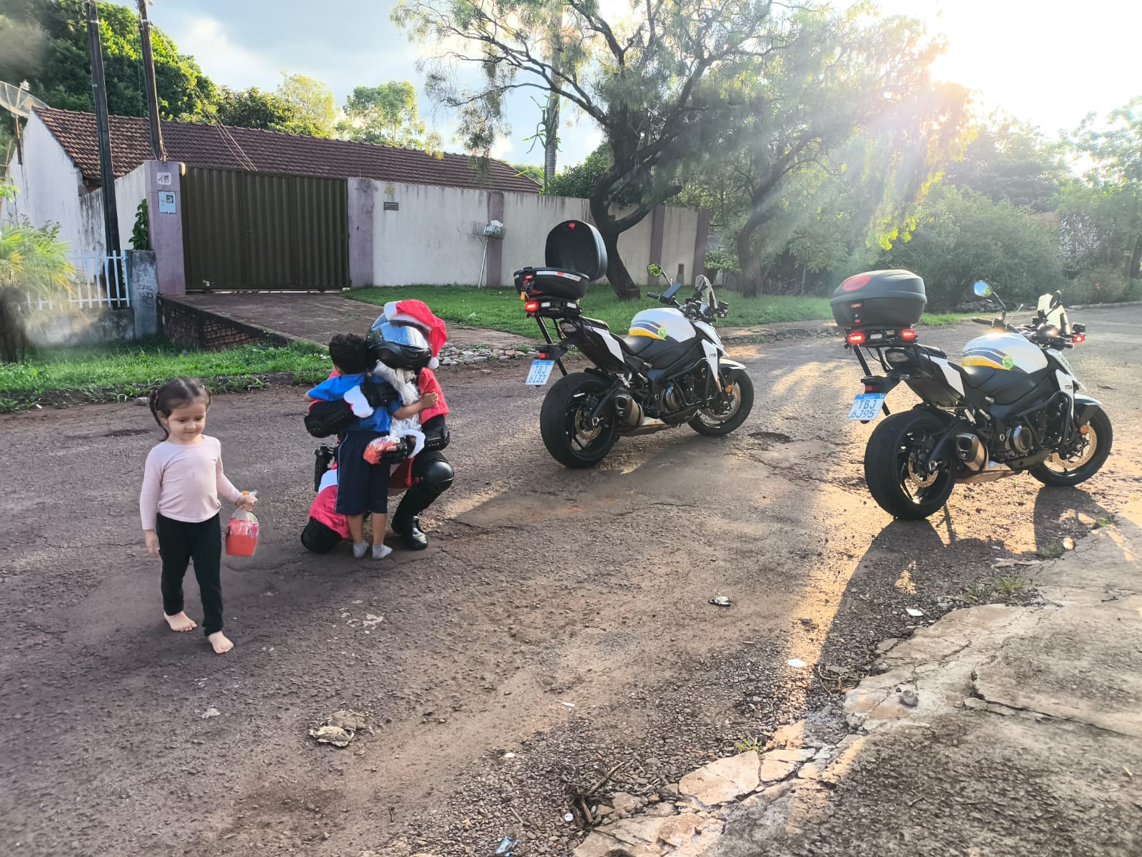 E para garantir sorrisos e felicidade, o GOTran (Grupo de Operações de Trânsito)do 6º Batalhão da Polícia Militar do Paraná, realizou ação social nas regiões Sul e Oeste de Cascavel.