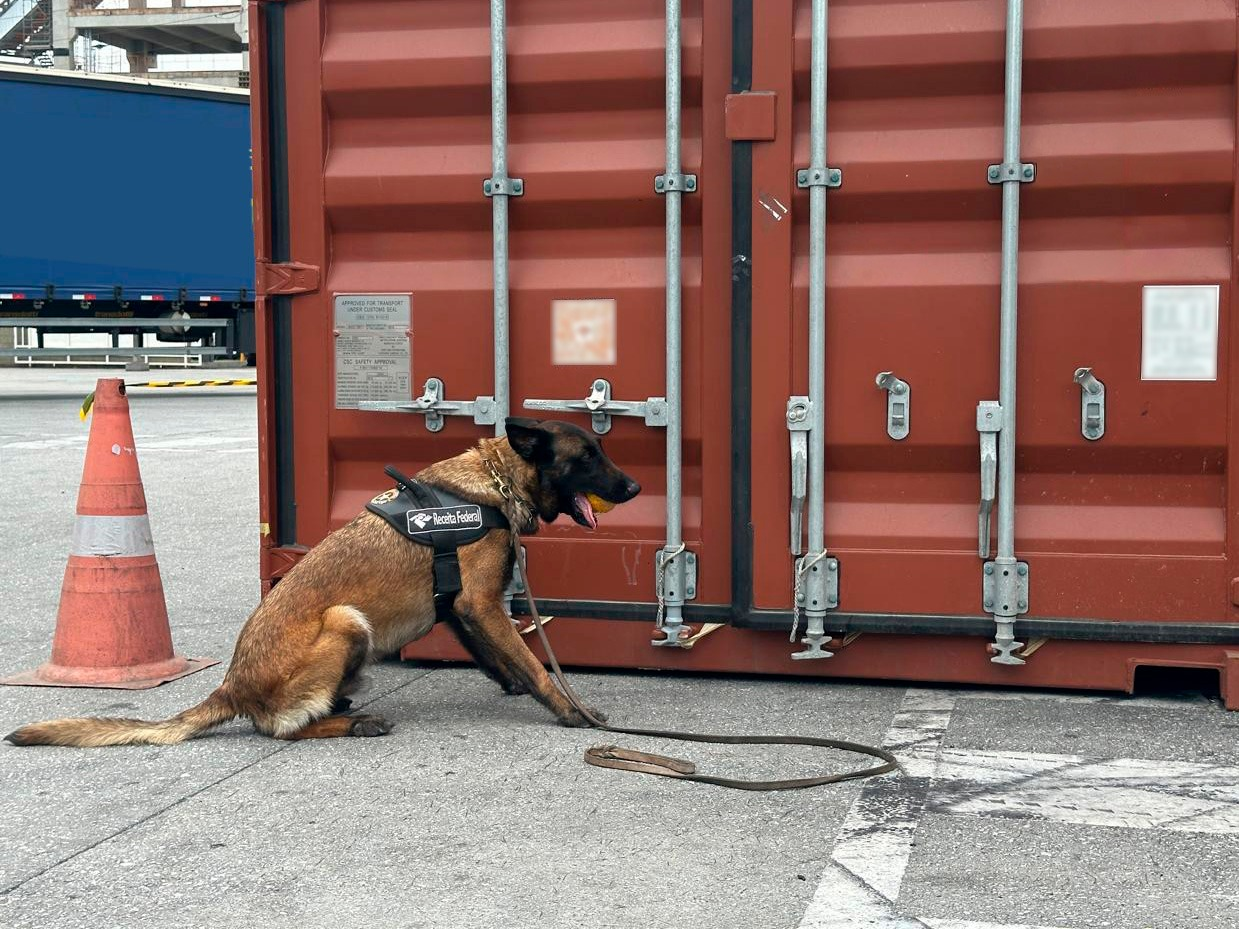 Nessa ação, os servidores da Receita Federal contaram com o auxílio do agente canino Falcon.