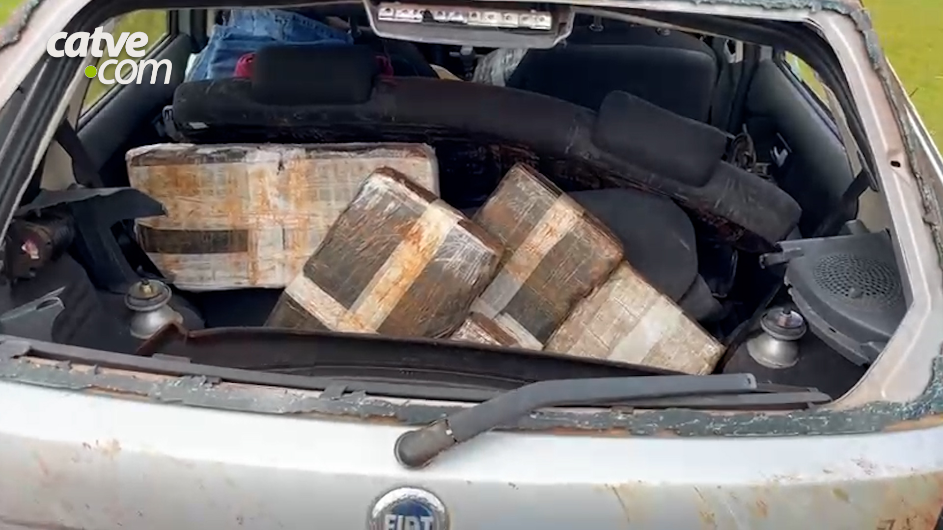 No veículo, os policiais encontraram grande quantidade de maconha, totalizando 102 kg. Com o homem estava uma adolescente de 16 anos, que foi apreendida.