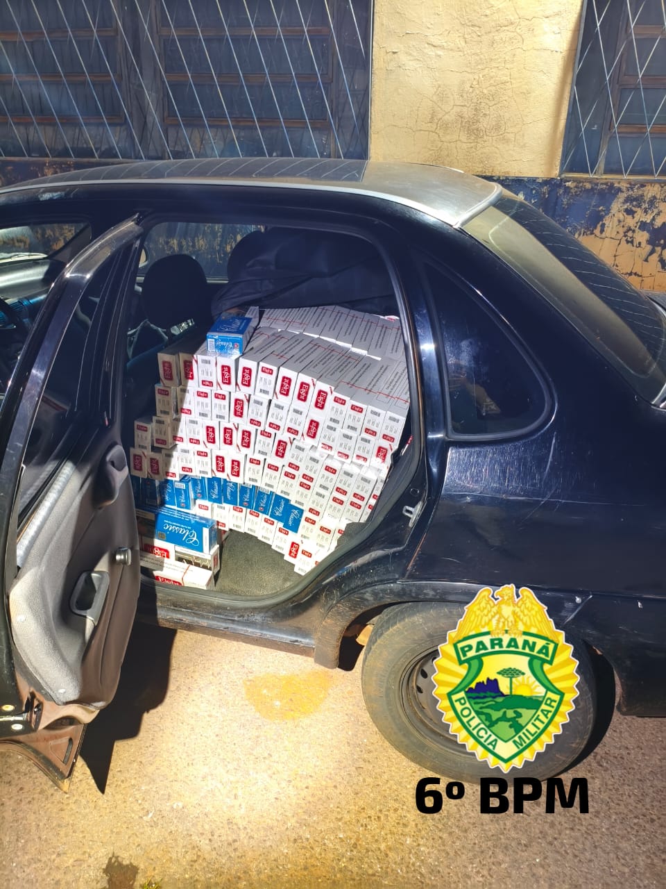 No momento da aproximação, os policiais visualizaram, através dos vidros do veículo, que o carro estava carregado com cigarros de origem paraguaia. Diante da constatação, o condutor recebeu voz de prisão pelo crime de contrabando.