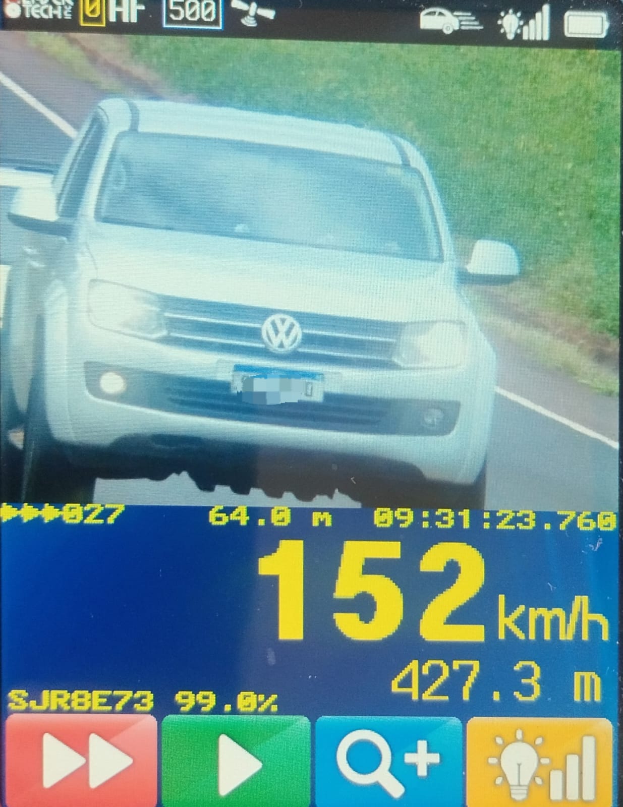 Um motorista foi flagrado trafegando a 152 km/h durante as ações de fiscalização realizadas pelo Batalhão de Polícia Rodoviária (BPRv), na virada do ano, na região Oeste do estado.
